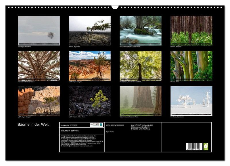 QUALITÄT - Hochwertiger Fotokalender mit 12 wunderschönen Motiven auf lichtbeständigem Bilderdruckpapier, robuste Spiralbindung mit Aufhängebügel.NACHHALTIG - deutliche Abfallreduzierung durch bedarfsgerechte Einzelstückfertigung, umweltfreundliches FSC-zertifiziertes Papier, Produktion in Deutschland, klimabewusste Logistik.PERFEKTES GESCHENK - Kalender für Freunde und Familie, für Kinder und Erwachsene, jung und alt, zu Weihnachten, Geburtstag oder zwischendurch.VIELFALT - Bildkalender in verschiedenen Formaten, z.B. DIN A5, DIN A4, DIN A3 sowie DIN A2. Ob Naturmotiv, Gemälde oder Fotos, ideal für ein persönliches Wohlfühlambiente.Eine Reise um die Welt zu verschiedenen Bäumen von Autor(in): Björn Alicke