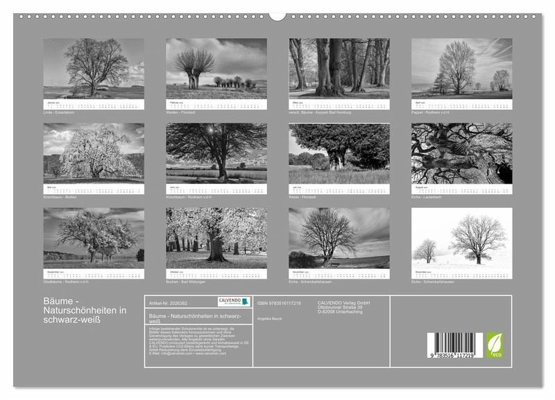 PREMIUM-LINIE - Brillanter Fotokalender mit 12 wunderschönen Motiven, Kunstdruck in Hochglanz in Museumsqualität.QUALITÄT - edle Materialien, stabile Rückwand mit 2 innovativen Einstecktaschen für eine optimale Präsentation an der Wand.NACHHALTIG - deutliche Abfallreduzierung durch bedarfsgerechte Einzelstückfertigung, umweltfreundliches FSC-zertifiziertes Papier, Produktion in Deutschland, klimabewusste Logistik.PERFEKTES GESCHENK - Kalender für Freunde und Familie, für Kinder und Erwachsene, jung und alt, zu Weihnachten, Geburtstag oder zwischendurch.Ausdrucksstarke Bäume als schwarz-weiß Fotografie von Autor(in): Angelika Beuck