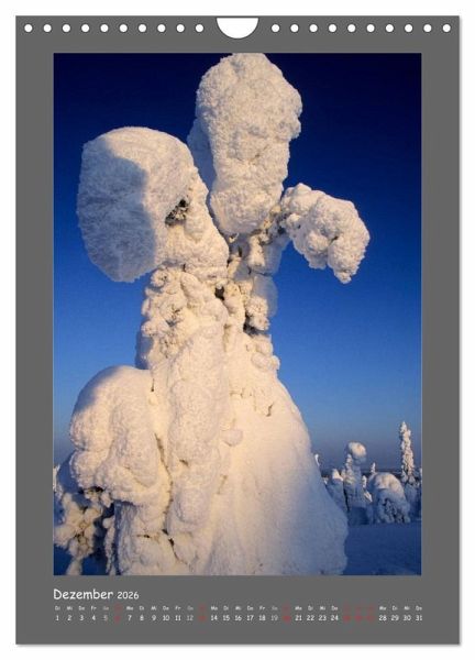Dezember: Schnee bedeckter Baum. Finnland