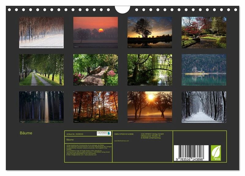 QUALITÄT - Hochwertiger Fotokalender mit 12 wunderschönen Motiven auf lichtbeständigem Bilderdruckpapier, robuste Spiralbindung mit Aufhängebügel.NACHHALTIG - deutliche Abfallreduzierung durch bedarfsgerechte Einzelstückfertigung, umweltfreundliches FSC-zertifiziertes Papier, Produktion in Deutschland, klimabewusste Logistik.PERFEKTES GESCHENK - Kalender für Freunde und Familie, für Kinder und Erwachsene, jung und alt, zu Weihnachten, Geburtstag oder zwischendurch.VIELFALT - Bildkalender in verschiedenen Formaten, z.B. DIN A5, DIN A4, DIN A3 sowie DIN A2. Ob Naturmotiv, Gemälde oder Fotos, ideal für ein persönliches Wohlfühlambiente.Bäume sind unsere wunderbaren, alltäglichen Wegbegleiter. von Autor(in): Martina Cross