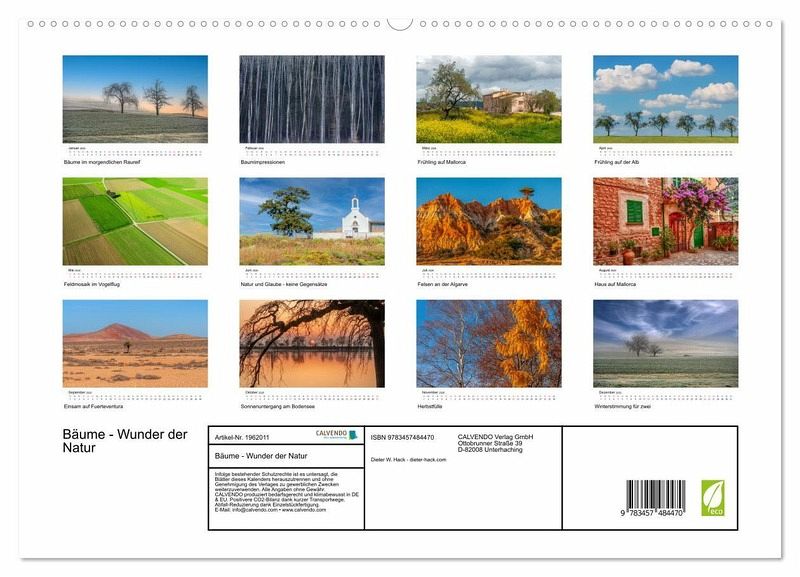 PREMIUM-LINIE - Brillanter Fotokalender mit 12 wunderschönen Motiven, Kunstdruck in Hochglanz in Museumsqualität.QUALITÄT - edle Materialien, stabile Rückwand mit 2 innovativen Einstecktaschen für eine optimale Präsentation an der Wand.NACHHALTIG - deutliche Abfallreduzierung durch bedarfsgerechte Einzelstückfertigung, umweltfreundliches FSC-zertifiziertes Papier, Produktion in Deutschland, klimabewusste Logistik.PERFEKTES GESCHENK - Kalender für Freunde und Familie, für Kinder und Erwachsene, jung und alt, zu Weihnachten, Geburtstag oder zwischendurch.Erleben Sie unsere Bäume in ihrer erhabenen, natürlichen Schönheit von Autor(in): Dieter W. Hack