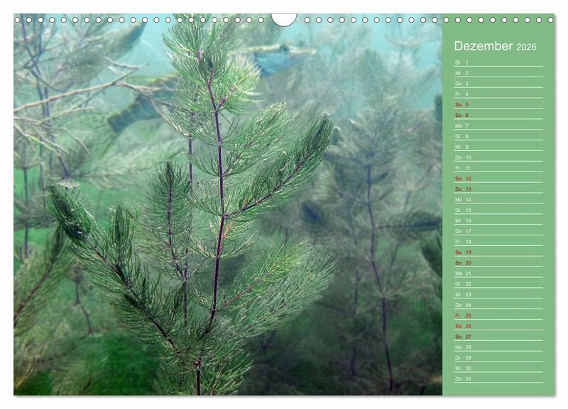 QUALITÄT - Hochwertiger Fotokalender mit 12 wunderschönen Motiven auf lichtbeständigem Bilderdruckpapier, robuste Spiralbindung mit Aufhängebügel.NACHHALTIG - deutliche Abfallreduzierung durch bedarfsgerechte Einzelstückfertigung, umweltfreundliches FSC-zertifiziertes Papier, Produktion in Deutschland, klimabewusste Logistik.PERFEKTES GESCHENK - Kalender für Freunde und Familie, für Kinder und Erwachsene, jung und alt, zu Weihnachten, Geburtstag oder zwischendurch.VIELFALT - Bildkalender in verschiedenen Formaten, z.B. DIN A5, DIN A4, DIN A3 sowie DIN A2. Ob Naturmotiv, Gemälde oder Fotos, ideal für ein persönliches Wohlfühlambiente.Unterwasserfotos von Pflanzen aus unseren Baggerseen von Autor(in): PetraGrafie143