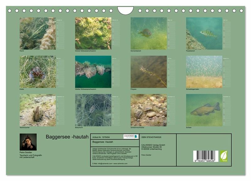 QUALITÄT - Hochwertiger Fotokalender mit 12 wunderschönen Motiven auf lichtbeständigem Bilderdruckpapier, robuste Spiralbindung mit Aufhängebügel.NACHHALTIG - deutliche Abfallreduzierung durch bedarfsgerechte Einzelstückfertigung, umweltfreundliches FSC-zertifiziertes Papier, Produktion in Deutschland, klimabewusste Logistik.PERFEKTES GESCHENK - Kalender für Freunde und Familie, für Kinder und Erwachsene, jung und alt, zu Weihnachten, Geburtstag oder zwischendurch.VIELFALT - Bildkalender in verschiedenen Formaten, z.B. DIN A5, DIN A4, DIN A3 sowie DIN A2. Ob Naturmotiv, Gemälde oder Fotos, ideal für ein persönliches Wohlfühlambiente.Tiere unter Wasser in deutschen Seen von Autor(in): PetraGrafie143