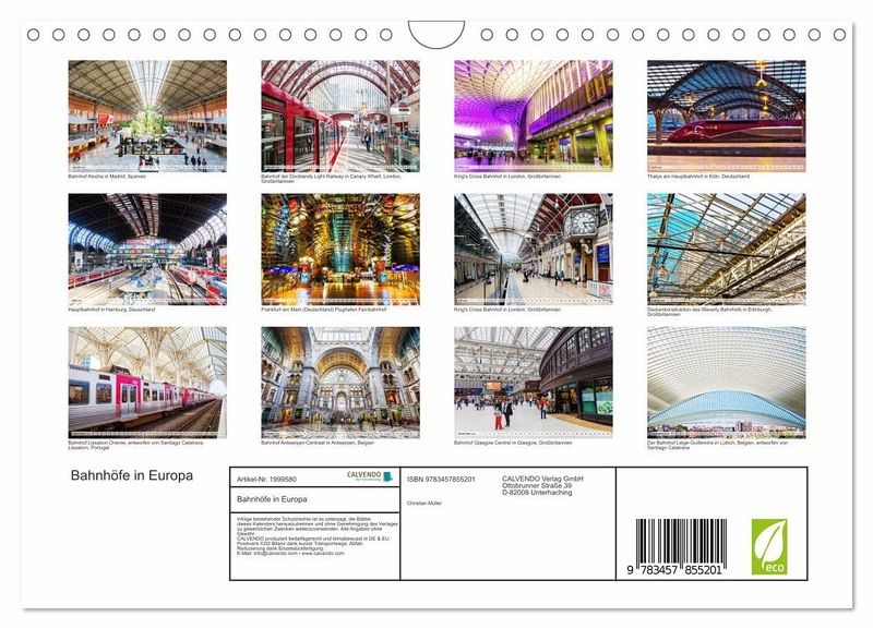 QUALITÄT - Hochwertiger Fotokalender mit 12 wunderschönen Motiven auf lichtbeständigem Bilderdruckpapier, robuste Spiralbindung mit Aufhängebügel.NACHHALTIG - deutliche Abfallreduzierung durch bedarfsgerechte Einzelstückfertigung, umweltfreundliches FSC-zertifiziertes Papier, Produktion in Deutschland, klimabewusste Logistik.PERFEKTES GESCHENK - Kalender für Freunde und Familie, für Kinder und Erwachsene, jung und alt, zu Weihnachten, Geburtstag oder zwischendurch.VIELFALT - Bildkalender in verschiedenen Formaten, z.B. DIN A5, DIN A4, DIN A3 sowie DIN A2. Ob Naturmotiv, Gemälde oder Fotos, ideal für ein persönliches Wohlfühlambiente.Szenen und Ansichten von europäischen Bahnhöfen von Autor(in): Christian Müller