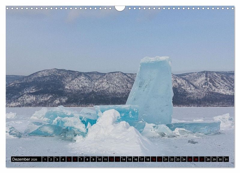 Im sibirischen Winter ist der Baikalsee, der größte, tiefste und älteste Süßwassersee der Erde, meterdick zugefroren. An den Ufern gefrieren die Wellen zu kuriosen Eisformationen. Das Eis ist immer in Bewegung, es reißt mitunter laut knallend und gefriert wieder. Der See wird bei Ortskundigen als Straße benutzt. Ein Ausflugsziel ist der Schamanenfelsen auf der Insel Olchon. Eine Reise an diesen faszinierenden See ist besonders im Winter ein unvergessliches Erlebnis.