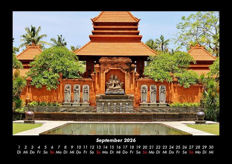 Bali 2026 Motivkalender DIN A3 Dieser Kalender zeigt die Schönheit der Insel: Bali anhand 12 imposanter Bilder. Vero-Kalender erhalten Sie mit Motiven aus den verschiedensten Themenbereichen wie Natur, Blumen und Landschaft, Tierwelt, Architektur, Reise und Urlaub, Technik, Automobil und Eisenbahn, Emotionen, Sport und Musik. Gedruckt werden die Monats-Kalender aus dem Vero Verlag auf hochwertigem Kalenderbogen in Premium-Qualität und verschiedenen Größen. Die Vielfältigkeit der Motive unserer Foto-Kalender ist dank der Zusammenarbeit mit kreativen Fotografen möglich.
