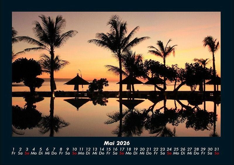 Bali 2026 Motivkalender DIN A4 Dieser Kalender zeigt die Schönheit der Insel: Bali anhand 12 imposanter Bilder. Vero-Kalender erhalten Sie mit Motiven aus den verschiedensten Themenbereichen wie Natur, Blumen und Landschaft, Tierwelt, Architektur, Reise und Urlaub, Technik, Automobil und Eisenbahn, Emotionen, Sport und Musik. Gedruckt werden die Monats-Kalender aus dem Vero Verlag auf hochwertigem Kalenderbogen in Premium-Qualität und verschiedenen Größen. Die Vielfältigkeit der Motive unserer Foto-Kalender ist dank der Zusammenarbeit mit kreativen Fotografen möglich.