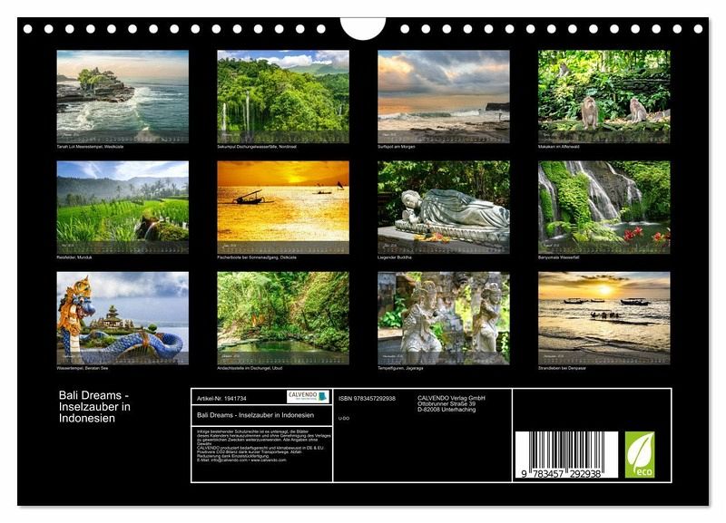 Bali: Indonesiens Inselparadies. Atemberaubende Strände, Reisterrassen und Dschungel. Ein Refugium für Spiritualität sowie Traumziel von Abenteurern und Surfern. Der Fotokalender beeindruckt mit fantastischen Landschaften, Sonnenuntergängen und Tempeln. Vom religiösen Zentrum in Ubud bis zu den legendären Stränden bei Denpasar: reizvolle Natur und Kultur in stimmungsvollen Bildern.