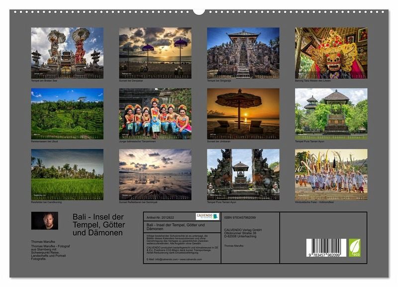 PREMIUM-LINIE - Brillanter Fotokalender mit 12 wunderschönen Motiven, Kunstdruck in Hochglanz in Museumsqualität.QUALITÄT - edle Materialien, stabile Rückwand mit 2 innovativen Einstecktaschen für eine optimale Präsentation an der Wand.NACHHALTIG - deutliche Abfallreduzierung durch bedarfsgerechte Einzelstückfertigung, umweltfreundliches FSC-zertifiziertes Papier, Produktion in Deutschland, klimabewusste Logistik.PERFEKTES GESCHENK - Kalender für Freunde und Familie, für Kinder und Erwachsene, jung und alt, zu Weihnachten, Geburtstag oder zwischendurch.Die indonesische Insel Bali liegt inmitten des indischen Ozeans und zieht schon seit Generationen Besucher aus aller Welt an. von Autor(in): Thomas Marufke