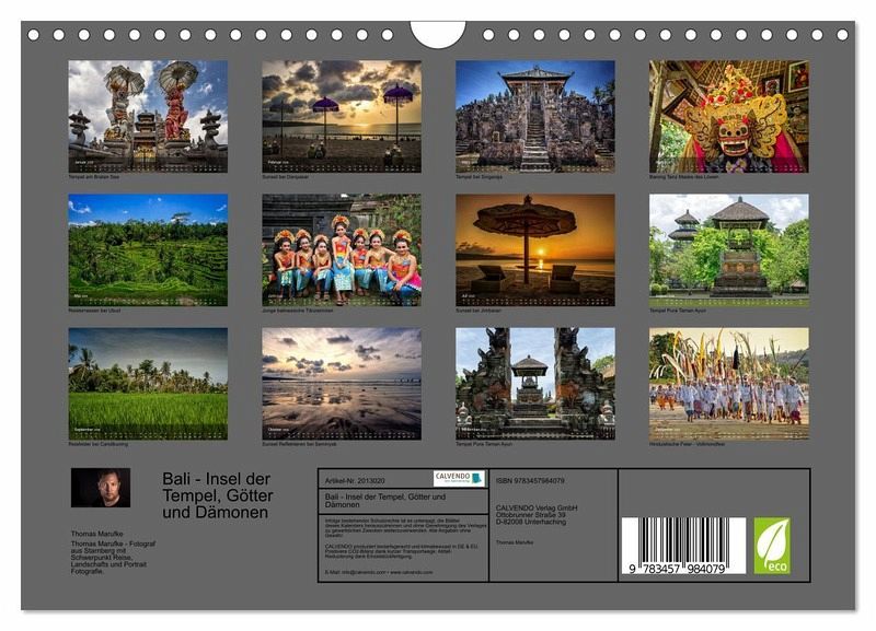 QUALITÄT - Hochwertiger Fotokalender mit 12 wunderschönen Motiven auf lichtbeständigem Bilderdruckpapier, robuste Spiralbindung mit Aufhängebügel.NACHHALTIG - deutliche Abfallreduzierung durch bedarfsgerechte Einzelstückfertigung, umweltfreundliches FSC-zertifiziertes Papier, Produktion in Deutschland, klimabewusste Logistik.PERFEKTES GESCHENK - Kalender für Freunde und Familie, für Kinder und Erwachsene, jung und alt, zu Weihnachten, Geburtstag oder zwischendurch.VIELFALT - Bildkalender in verschiedenen Formaten, z.B. DIN A5, DIN A4, DIN A3 sowie DIN A2. Ob Naturmotiv, Gemälde oder Fotos, ideal für ein persönliches Wohlfühlambiente.Die indonesische Insel Bali liegt inmitten des indischen Ozeans und zieht schon seit Generationen Besucher aus aller Welt an. von Autor(in): Thomas Marufke