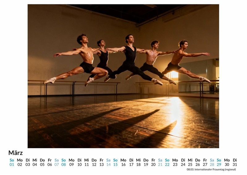 Ein flüchtiger Moment, in dem Bewegung zu reiner Form erstarrt. Der Kalender "Ballett & Tanzfotografie" fängt die Essenz des Tanzes in zwölf einzigartigen Kompositionen ein. Jedes Monatsblatt enthüllt eine neue Facette der tänzerischen Ausdruckskraft, von klassischer Eleganz bis zu moderner Dynamik. Dieser Kalender ist eine ideale Wahl: * Für Liebhaber des Tanzes und Balletts. * Für Freunde ästhetischer Fotografie und künstlerischer Inszenierungen. * Für alle, die ein besonderes Geschenk mit künstlerischem Anspruch suchen. Die Fotografien spielen mit Licht und Schatten, um die Konturen der Körper und die Textur der Stoffe zu betonen. Kraftvolle Sprünge wechseln sich mit ruhigen Posen ab und erzählen kleine Geschichten von Disziplin und Anmut. Die Motive entspringen einer Symbiose aus menschlicher Kreativität und digitaler Bilderzeugung, was ihnen eine besondere, fast surreale Qualität verleiht. Was der Kalender bietet: * Zwölf ästhetische Monatsmotive aus der Welt des Tanzes. * Ein dekorativer Wandkalender für das ganze Jahr. * Ein übersichtliches Kalendarium, das den Bildern Raum zur Entfaltung gibt. Der Kalender "Ballett & Tanzfotografie" ist eine Hommage an die Kunstform des Tanzes und die Möglichkeiten moderner Bildgestaltung. Eine Entdeckungsreise durch zwölf Monate voller Grazie und Ausdruckskraft erwartet den Betrachter.