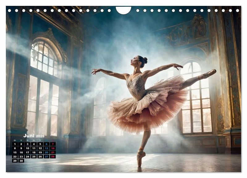 Erleben Sie die Faszination des Balletts - ein Tanz, der die Gesetze der Schwerkraft zu überwinden scheint und die Sinne verzaubert. Lassen Sie sich von der Leichtigkeit und Schönheit dieser Kunstform in ihren Bann ziehen und spüren Sie die Magie, die in jedem Augenblick lebt. Tauchen Sie ein und erleben Sie Momente, die die Zeit stillstehen lassen. Ballett - der Inbegriff von Grazie und Magie. Dieser Kalender wurde mit Unterstützung der KI erstellt.