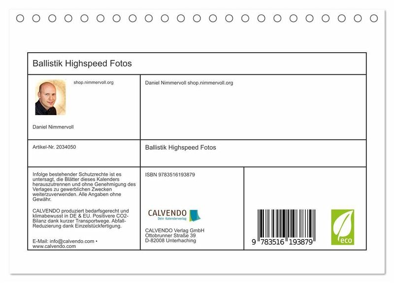 QUALITÄT - Hochwertiger Fotokalender mit 12 wunderschönen Motiven auf lichtbeständigem Bilderdruckpapier, robuste Spiralbindung.NACHHALTIG - deutliche Abfallreduzierung durch bedarfsgerechte Einzelstückfertigung, umweltfreundliches FSC-zertifiziertes Papier, Produktion in Deutschland, klimabewusste Logistik.PERFEKTES GESCHENK - Kalender für Freunde und Familie, für Kinder und Erwachsene, jung und alt, zu Weihnachten, Geburtstag oder zwischendurch.VIELFALT - Bildkalender in verschiedenen Formaten, z.B. DIN A5, DIN A4, DIN A3 sowie DIN A2. Ob Naturmotiv, Gemälde oder Fotos, ideal für ein persönliches Wohlfühlambiente.Ballistik Highspeed Fotos - Ultra kurze Momente eingefroren von Autor(in): Daniel Nimmervoll