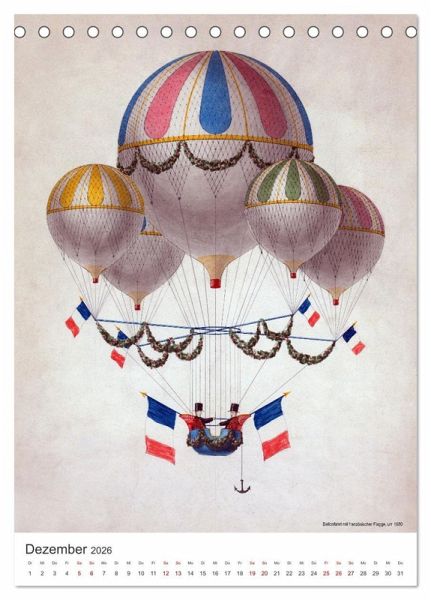Der Traum vom Fliegen ist so alt, wie die Menschheit selbst und hatte im 18. und 19. Jahrhundert zu Beginn der neuzeitlichen Luftfahrt eine erste Hochblüte. Der Ballonfahrt-Kalender präsentiert großformatig 12 sorgfältig ausgewählte historische Ballonfahrt-Illustrationen mit Informationen zur Entstehungszeit. Die historischen Drucke farbenfroher und phantastischer Freiballone aus alter Zeit bieten ein faszinierendes Panoptikum der kreativen und kuriosen Visionen zum Thema Fliegen. Schwerelos schweben in diesem Kalender auch unmögliche Konstruktionen von Gasballonen und Heißluftballonen und bezaubern durch ihren naiven und phantasievollen Charme. Denn so wie der Himmel kennt auch die Phantasie keine Grenzen. Eine besondere Geschenkidee für alle, die Phantasie und Technikgeschichte lieben. Oder schenken Sie ihn sich doch einfach selbst!