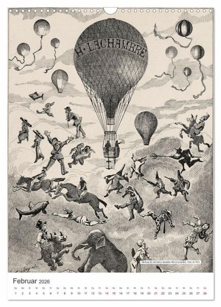 Der Traum vom Fliegen ist so alt, wie die Menschheit selbst und hatte im 18. und 19. Jahrhundert zu Beginn der neuzeitlichen Luftfahrt eine erste Hochblüte. Der Ballonfahrt-Kalender präsentiert großformatig 12 sorgfältig ausgewählte historische Ballonfahrt-Illustrationen mit Informationen zur Entstehungszeit. Die historischen Drucke farbenfroher und phantastischer Freiballone aus alter Zeit bieten ein faszinierendes Panoptikum der kreativen und kuriosen Visionen zum Thema Fliegen. Schwerelos schweben in diesem Kalender auch unmögliche Konstruktionen von Gasballonen und Heißluftballonen und bezaubern durch ihren naiven und phantasievollen Charme. Denn so wie der Himmel kennt auch die Phantasie keine Grenzen. Eine besondere Geschenkidee für alle, die Phantasie und Technikgeschichte lieben. Oder schenken Sie ihn sich doch einfach selbst!