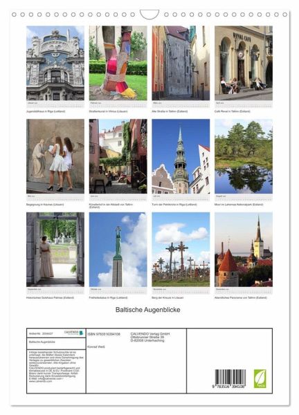 Der Kalender zeigt Ansichten und Impressionen aus Estland, Lettland und Litauen. Die drei baltischen Länder haben eine reiche Tradition und Geschichte. Nach der Wiedererlangung ihrer Unabhängigkeit und mit der Mitgliedschaft in der Europäischen Union erleben sie eine neue Blüte. Jedes Land geht dabei einen eigenen, unverwechselbaren Weg.
