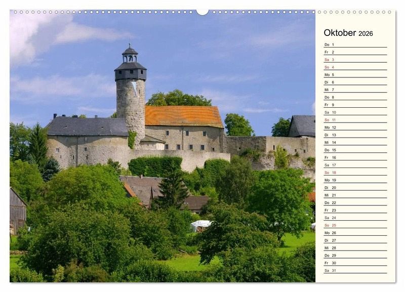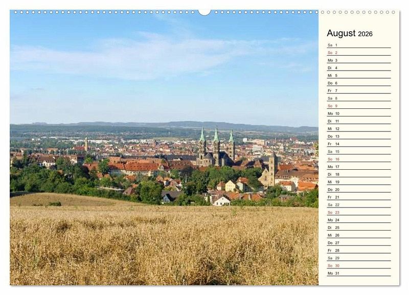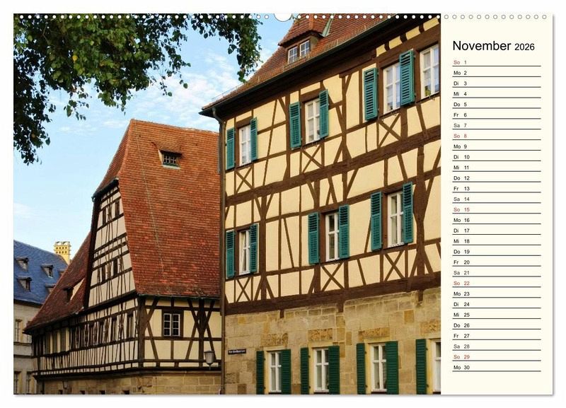 Der Planer zeigt Sehenswürdigkeiten in Bamberg und der Fränkischen Schweiz. Aufnahmen aus Gößweinstein, dem Felsendorf Tüchersfeld und vielen historischen Gebäuden aus der alten Stadt Bamberg begleiten sie durch das Jahr.