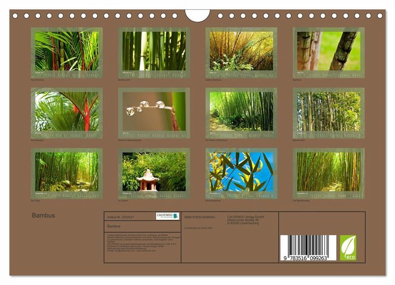 QUALITÄT - Hochwertiger Fotokalender mit 12 wunderschönen Motiven auf lichtbeständigem Bilderdruckpapier, robuste Spiralbindung mit Aufhängebügel.NACHHALTIG - deutliche Abfallreduzierung durch bedarfsgerechte Einzelstückfertigung, umweltfreundliches FSC-zertifiziertes Papier, Produktion in Deutschland, klimabewusste Logistik.PERFEKTES GESCHENK - Kalender für Freunde und Familie, für Kinder und Erwachsene, jung und alt, zu Weihnachten, Geburtstag oder zwischendurch.VIELFALT - Bildkalender in verschiedenen Formaten, z.B. DIN A5, DIN A4, DIN A3 sowie DIN A2. Ob Naturmotiv, Gemälde oder Fotos, ideal für ein persönliches Wohlfühlambiente.Die Welt des Bambus von Autor(in): CrystalLights by Sylvia Seibl