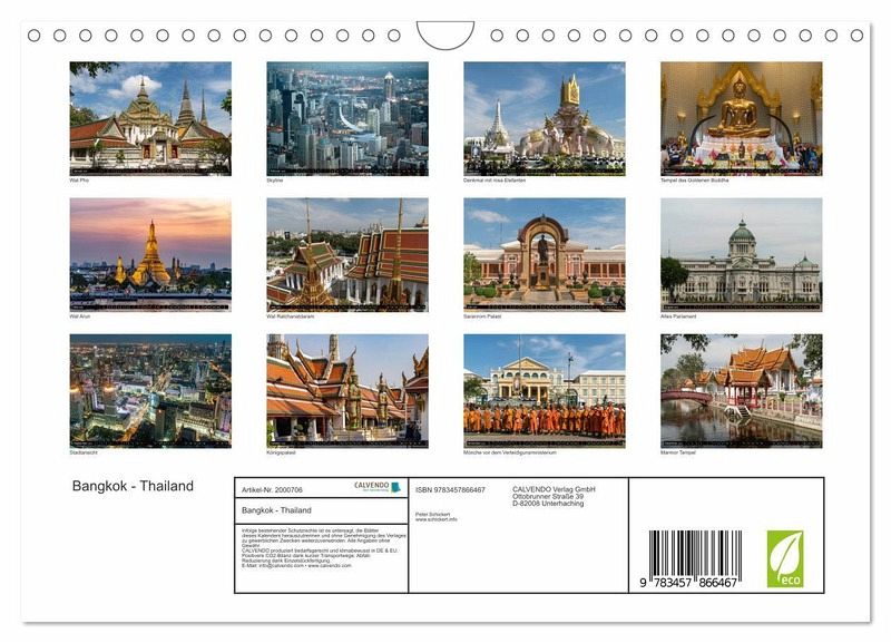 QUALITÄT - Hochwertiger Fotokalender mit 12 wunderschönen Motiven auf lichtbeständigem Bilderdruckpapier, robuste Spiralbindung mit Aufhängebügel.NACHHALTIG - deutliche Abfallreduzierung durch bedarfsgerechte Einzelstückfertigung, umweltfreundliches FSC-zertifiziertes Papier, Produktion in Deutschland, klimabewusste Logistik.PERFEKTES GESCHENK - Kalender für Freunde und Familie, für Kinder und Erwachsene, jung und alt, zu Weihnachten, Geburtstag oder zwischendurch.VIELFALT - Bildkalender in verschiedenen Formaten, z.B. DIN A5, DIN A4, DIN A3 sowie DIN A2. Ob Naturmotiv, Gemälde oder Fotos, ideal für ein persönliches Wohlfühlambiente.Die Thailändische Hauptstadt in einem Kalender vom Reisefotografen Peter Schickert von Autor(in): Peter Schickert