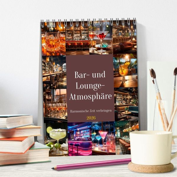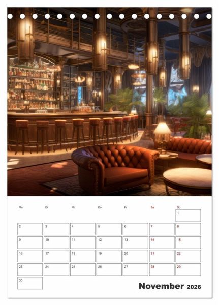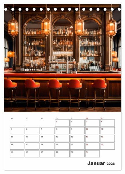 Exklusive Bar-Atmosphäre mit unvergleichlicher Ausstrahlung charmanter Möbel, klassischer Massivholztheken sowie modernes Interieur empfangen Sie in diesem Terminplaner. Das gemütliche Lounge-Ambiente lässt den Genuss von edlem Whisky, feinen Cocktailklassikern oder einem erlesenen Wein zu einem Erlebnis werden. Die Motive wurden in Kooperation mit künstlicher Intelligenz erschaffen.