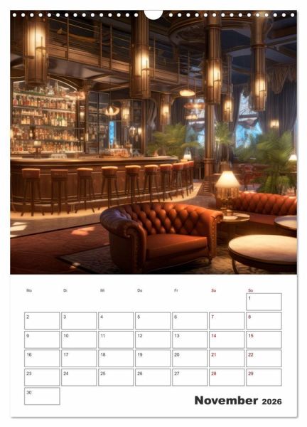 Exklusive Bar-Atmosphäre mit unvergleichlicher Ausstrahlung charmanter Möbel, klassischer Massivholztheken sowie modernes Interieur empfangen Sie in diesem Terminplaner. Das gemütliche Lounge-Ambiente lässt den Genuss von edlem Whisky, feinen Cocktailklassikern oder einem erlesenen Wein zu einem Erlebnis werden. Die Motive wurden in Kooperation mit künstlicher Intelligenz erschaffen.