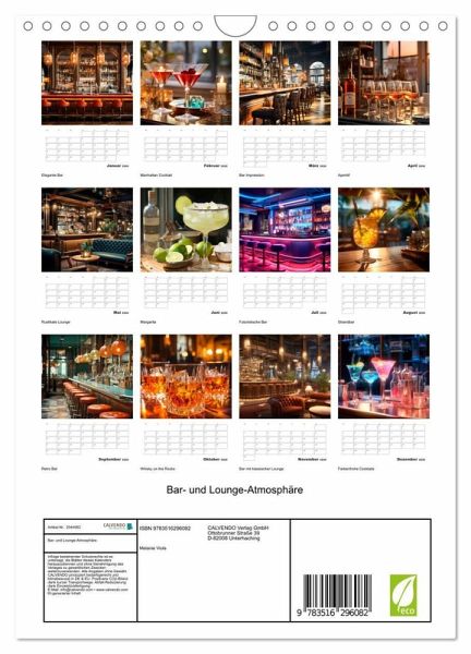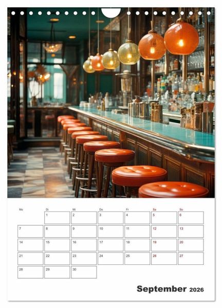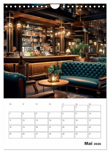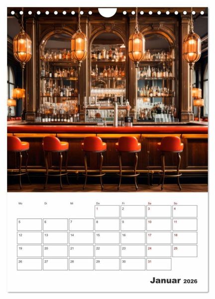 Exklusive Bar-Atmosphäre mit unvergleichlicher Ausstrahlung charmanter Möbel, klassischer Massivholztheken sowie modernes Interieur empfangen Sie in diesem Terminplaner. Das gemütliche Lounge-Ambiente lässt den Genuss von edlem Whisky, feinen Cocktailklassikern oder einem erlesenen Wein zu einem Erlebnis werden. Die Motive wurden in Kooperation mit künstlicher Intelligenz erschaffen.