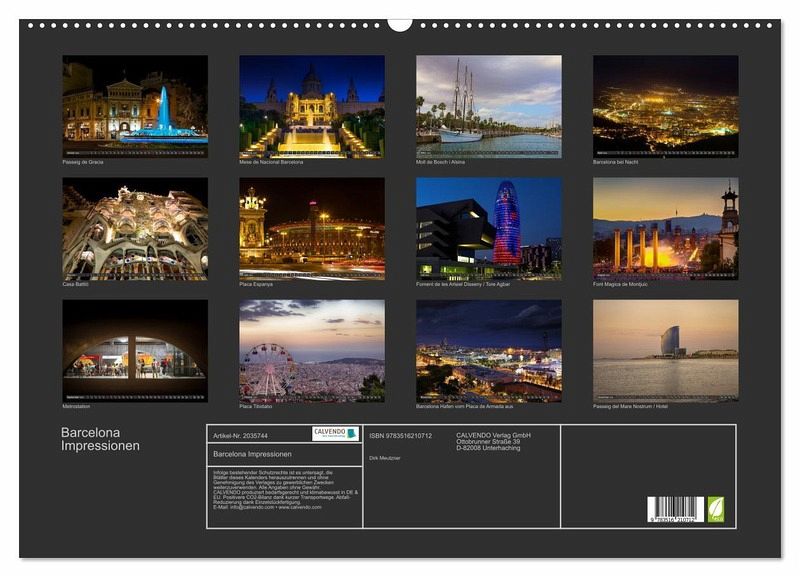 QUALITÄT - Hochwertiger Fotokalender mit 12 wunderschönen Motiven auf lichtbeständigem Bilderdruckpapier, robuste Spiralbindung mit Aufhängebügel.NACHHALTIG - deutliche Abfallreduzierung durch bedarfsgerechte Einzelstückfertigung, umweltfreundliches FSC-zertifiziertes Papier, Produktion in Deutschland, klimabewusste Logistik.PERFEKTES GESCHENK - Kalender für Freunde und Familie, für Kinder und Erwachsene, jung und alt, zu Weihnachten, Geburtstag oder zwischendurch.VIELFALT - Bildkalender in verschiedenen Formaten, z.B. DIN A5, DIN A4, DIN A3 sowieDIN A2. Ob Naturmotiv, Gemälde oder Fotos, ideal für ein persönliches Wohlfühlambiente.Kommen Sie mit auf eine Reise in die katalanische Metropole Barcelona von Autor(in): Dirk Meutzner