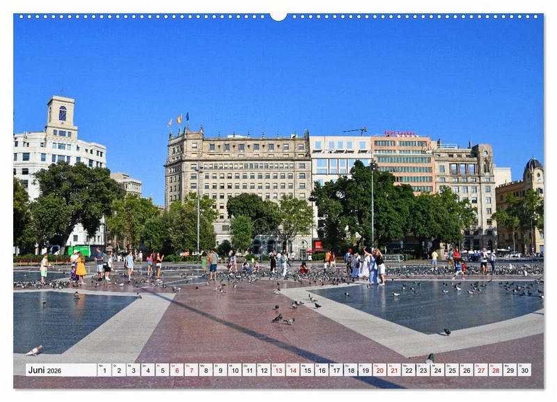 Juni: Der Placa de Catalunya, Barcelonas zentraler Ort, ist auch Heimat Tausender Tauben