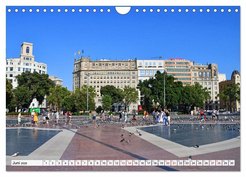 Juni: Der Placa de Catalunya, Barcelonas zentraler Ort, ist auch Heimat Tausender Tauben