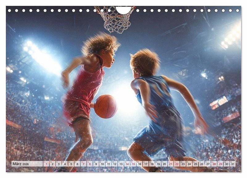Erlebe die Faszination des Basketballs das ganze Jahr über! Unser exklusiver Basketballkalender zeigt in beeindruckenden Illustrationen den Teamgeist, die Energie und den unbändigen Willen junger Talente auf dem Spielfeld. Jeder Monat fängt einen Moment voller Emotionen ein, vom entscheidenden Wurf bis zum kämpferischen Dribbling. Perfekt für alle, die Sport, Dynamik und Motivation lieben. Ob im Kinderzimmer, Büro oder Vereinsheim, dieser Kalender erinnert täglich daran, was Leidenschaft, Fairplay und Teamwork bedeuten. Ein ideales Geschenk für kleine und große Basketballfans, Trainer oder Eltern, die den Spirit des Spiels leben. Lass dich inspirieren, Monat für Monat, Spielzug für Spielzug. Erstellt wurden die Illustrationen mit KI und Photoshop.