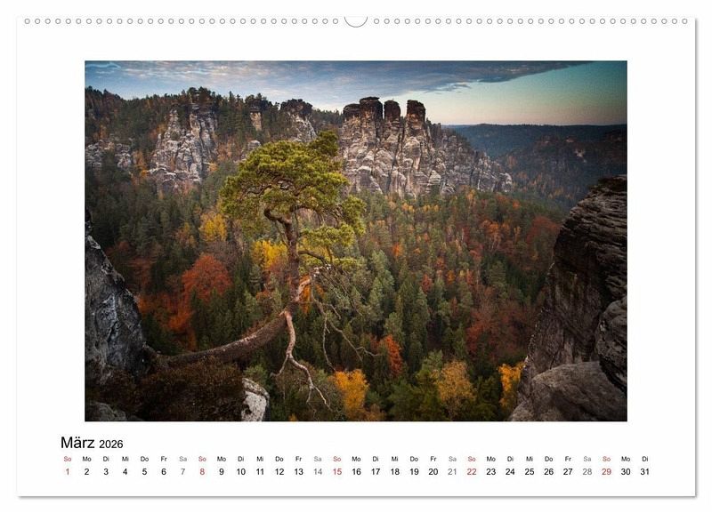 März: Bastei bei Sonnenuntergang im Herbst