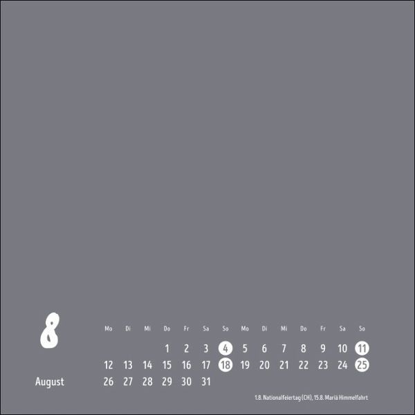 Schenken Sie Ihren Lieben ganzjährige Freude: Einfach Lieblingsfotos einkleben oder selbst den Pinsel schwingen - fertig ist Ihr ganz persönliches Kalender-Kunstwerk! Viel Spaß beim Basteln und Überraschen von Freunden oder Familie! Mit anthrazitfarbenen Innenseiten. Selbst gestaltete Kalender verschenken: Bastelkalender von HeyeHier haben Sie die Wahl und können Ihren Kalender ganz individuell gestalten! Schwarz, Gold, Silber oder Weiß - welche Farbe gefällt ihnen am besten? Auch bei den Kalenderformaten gibt es eine große Auswahl: Ein Premium-Wandkalender, damit die Urlaubsfotos richtig zur Geltung kommen? Einen mehrspaltigen Familienplaner, den die Kinder mit eigenen Bildern schmücken? Oder lieber einen kleinen Kalender als nettes Mitbringsel für Lieblingsmenschen?Alle Heye-Bastelkalender sind aus hochwertigem Papier gefertigt und besitzen eine stabile Spiralbindung zum Aufhängen. So hat ihr persönliches Kalender-Geschenk den optimalen Rahmen!