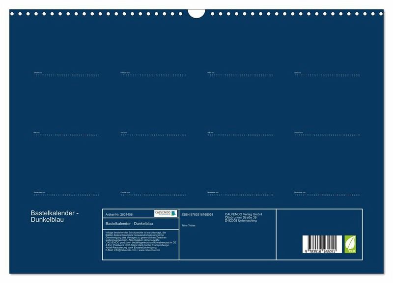 QUALITÄT - Hochwertiger Fotokalender mit 12 wunderschönen Motiven auf lichtbeständigem Bilderdruckpapier, robuste Spiralbindung mit Aufhängebügel.NACHHALTIG - deutliche Abfallreduzierung durch bedarfsgerechte Einzelstückfertigung, umweltfreundliches FSC-zertifiziertes Papier, Produktion in Deutschland, klimabewusste Logistik.PERFEKTES GESCHENK - Kalender für Freunde und Familie, für Kinder und Erwachsene, jung und alt, zu Weihnachten, Geburtstag oder zwischendurch.VIELFALT - Bildkalender in verschiedenen Formaten, z.B. DIN A5, DIN A4, DIN A3 sowie DIN A2. Ob Naturmotiv, Gemälde oder Fotos, ideal für ein persönliches Wohlfühlambiente.Bastelkalender - Dunkelblau von Autor(in): Alexander Tobias