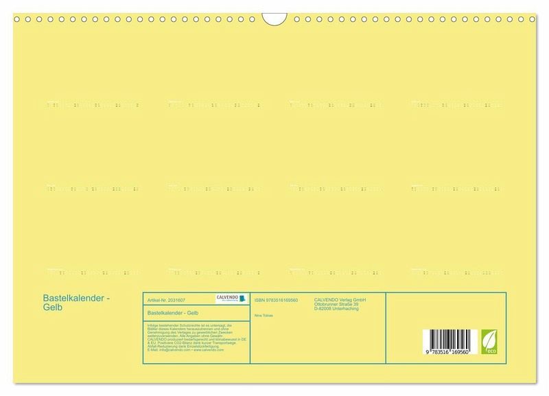 QUALITÄT - Hochwertiger Fotokalender mit 12 wunderschönen Motiven auf lichtbeständigem Bilderdruckpapier, robuste Spiralbindung mit Aufhängebügel.NACHHALTIG - deutliche Abfallreduzierung durch bedarfsgerechte Einzelstückfertigung, umweltfreundliches FSC-zertifiziertes Papier, Produktion in Deutschland, klimabewusste Logistik.PERFEKTES GESCHENK - Kalender für Freunde und Familie, für Kinder und Erwachsene, jung und alt, zu Weihnachten, Geburtstag oder zwischendurch.VIELFALT - Bildkalender in verschiedenen Formaten, z.B. DIN A5, DIN A4, DIN A3 sowie DIN A2. Ob Naturmotiv, Gemälde oder Fotos, ideal für ein persönliches Wohlfühlambiente.Bastelkalender - Gelb von Autor(in): Alexander Tobias
