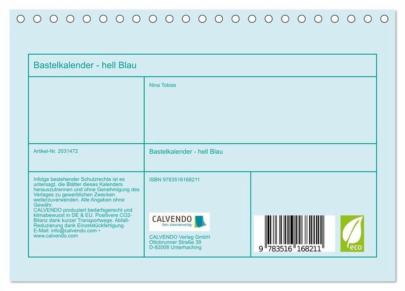 QUALITÄT - Hochwertiger Fotokalender mit 12 wunderschönen Motiven auf lichtbeständigem Bilderdruckpapier, robuste Spiralbindung.NACHHALTIG - deutliche Abfallreduzierung durch bedarfsgerechte Einzelstückfertigung, umweltfreundliches FSC-zertifiziertes Papier, Produktion in Deutschland, klimabewusste Logistik.PERFEKTES GESCHENK - Kalender für Freunde und Familie, für Kinder und Erwachsene, jung und alt, zu Weihnachten, Geburtstag oder zwischendurch.VIELFALT - Bildkalender in verschiedenen Formaten, z.B. DIN A5, DIN A4, DIN A3 sowie DIN A2. Ob Naturmotiv, Gemälde oder Fotos, ideal für ein persönliches Wohlfühlambiente.Bastelkalender - hell Blau von Autor(in): Alexander Tobias