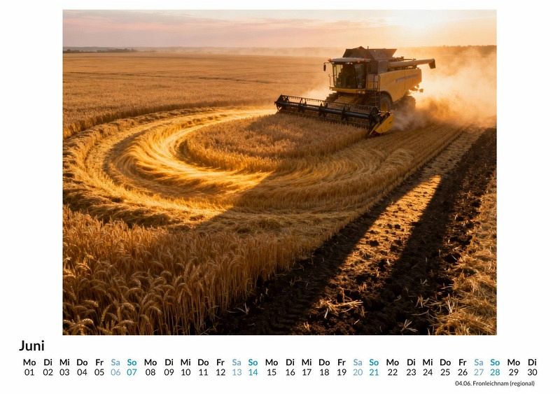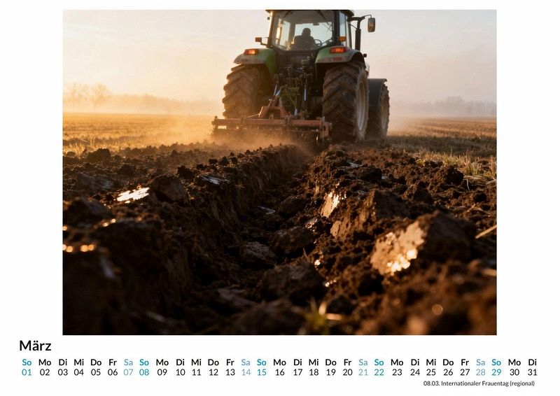 Die Landwirtschaft ist mehr als nur Arbeit; sie ist ein Lebensgefühl, geprägt von den Jahreszeiten und der tiefen Verbundenheit zur Natur. Dieser Kalender fängt genau diese Stimmung in zwölf eindrucksvollen Szenen ein, die den Betrachter durch das bäuerliche Jahr begleiten. Dieser Kalender ist optimal für: * Alle, die das Landleben und seine authentische Atmosphäre schätzen. * Menschen mit einem Bezug zur Agrarwirtschaft, sei es beruflich oder aus Leidenschaft. * Liebhaber von ruhigen und idyllischen Motiven, die eine beruhigende Wanddekoration suchen. Der Kalender "Bauernhof- & Landwirtschaftsmotive" zeigt ein Jahr voller ländlicher Impressionen. Die Motive reichen von der detailgetreuen Darstellung moderner Landmaschinen bei der Arbeit bis hin zu zeitlosen Panoramen von Feldern und Wiesen im Wandel der Jahreszeiten. Jede Szene wurde durch die Interpretation von Daten und Beschreibungen zu einem einzigartigen Bild komponiert, das realistische und idealisierte Momente vereint. Von goldenen Erntefeldern im Spätsommer über nebelverhangene Weiden im Herbst bis hin zu Tieren auf dem Hof im klaren Winterlicht wird die Vielfalt des Agrarjahres gezeigt. Der Kauf dieses Kalenders beinhaltet: * Zwölf Monatsblätter mit Motiven aus der Landwirtschaft. * Ein praktisches Kalendarium für die Organisation von Terminen. * Eine ansprechende Dekoration für Küche, Büro oder Wohnzimmer. Dieser Kalender fängt die Essenz des Landlebens in zwölf besonderen Momenten ein. Er zelebriert die Ruhe, die Kraft und die beständige Schönheit, die dem ländlichen Leben innewohnt. Eine Einladung, die Schönheit und Vielfalt der Landwirtschaft Monat für Monat neu zu entdecken.
