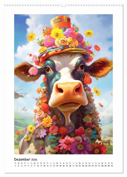 Dezember: Eine Kuh mit bunten Blumen