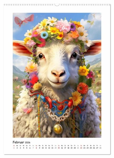 Februar: Ein niedliches Lamm mit Blumen