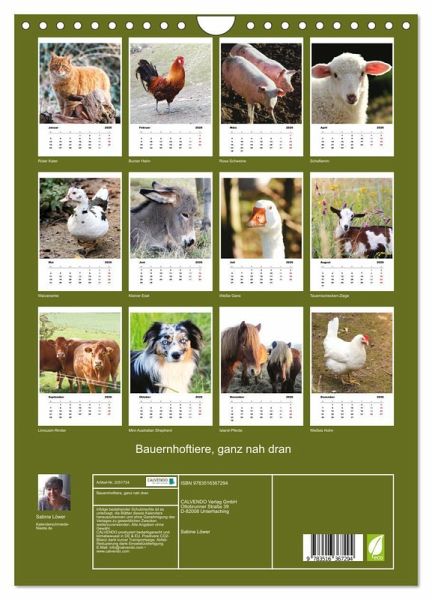 QUALITÄT - Hochwertiger Fotokalender mit 12 wunderschönen Motiven auf lichtbeständigem Bilderdruckpapier, robuste Spiralbindung mit Aufhängebügel.NACHHALTIG - deutliche Abfallreduzierung durch bedarfsgerechte Einzelstückfertigung, umweltfreundliches FSC-zertifiziertes Papier, Produktion in Deutschland, klimabewusste Logistik.PERFEKTES GESCHENK - Kalender für Freunde und Familie, für Kinder und Erwachsene, jung und alt, zu Weihnachten, Geburtstag oder zwischendurch.VIELFALT - Bildkalender in verschiedenen Formaten, z.B. DIN A5, DIN A4, DIN A3 sowie DIN A2. Ob Naturmotiv, Gemälde oder Fotos, ideal für ein persönliches Wohlfühlambiente.Zauberhafte Tierfotografie auf dem Land von Autor(in): Sabine Löwer