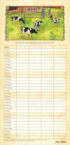 Bauernkalender Familienplaner 2026 im Format 22 x 45 cm