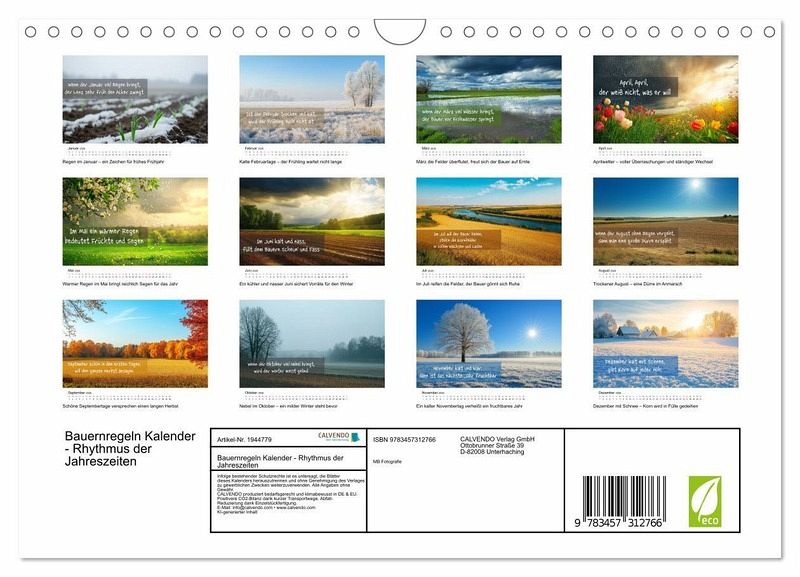 QUALITÄT - Hochwertiger Fotokalender mit 12 wunderschönen Motiven auf lichtbeständigem Bilderdruckpapier, robuste Spiralbindung mit Aufhängebügel.NACHHALTIG - deutliche Abfallreduzierung durch bedarfsgerechte Einzelstückfertigung, umweltfreundliches FSC-zertifiziertes Papier, Produktion in Deutschland, klimabewusste Logistik.PERFEKTES GESCHENK - Kalender für Freunde und Familie, für Kinder und Erwachsene, jung und alt, zu Weihnachten, Geburtstag oder zwischendurch.VIELFALT - Bildkalender in verschiedenen Formaten, z.B. DIN A5, DIN A4, DIN A3 sowie DIN A2. Ob Naturmotiv, Gemälde oder Fotos, ideal für ein persönliches Wohlfühlambiente.Dieser wunderschöne Kalender führt Sie Monat für Monat mit traditionellen Bauernregeln durch das Jahr. Jede Regel wird durch stimmungsvolle Landschaftsbilder ergänzt, die die verschiedenen Jahreszeiten in all ihrer Prach von Autor(in): Michael Bihlmayer