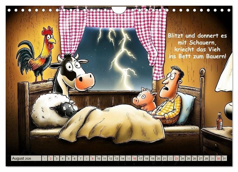 Diese Bauernregeln sind so flach, dass sie schon wieder lustig sind. Sie dienen der Unterhaltung und nicht der Bestimmung des richtigen Zeitpunkts für den Getreideanbau oder dessen Ernte. Dafür gibt es die "echten" Bauernregeln. Schmunzeln Sie jeden Monat über eine urkomische Bauernregel mit passendem KI-Bild im Comic-Stil.