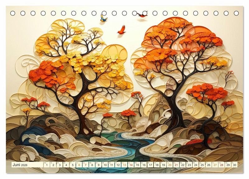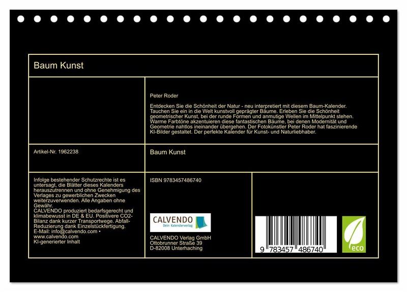 Entdecken Sie die Schönheit der Natur - neu interpretiert mit diesem Baum-Kalender. Tauchen Sie ein in die Welt kunstvoll geprägter Bäume. Erleben Sie die Schönheit geometrischer Kunst, bei der runde Formen und anmutige Wellen im Mittelpunkt stehen. Warme Farbtöne akzentuieren diese fantastischen Bäume, bei denen Modernität und Geometrie nahtlos ineinander übergehen. Der Fotokünstler Peter Roder hat faszinierende KI-Bilder gestaltet. Der perfekte Kalender für Kunst- und Naturliebhaber.
