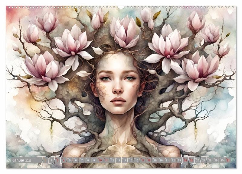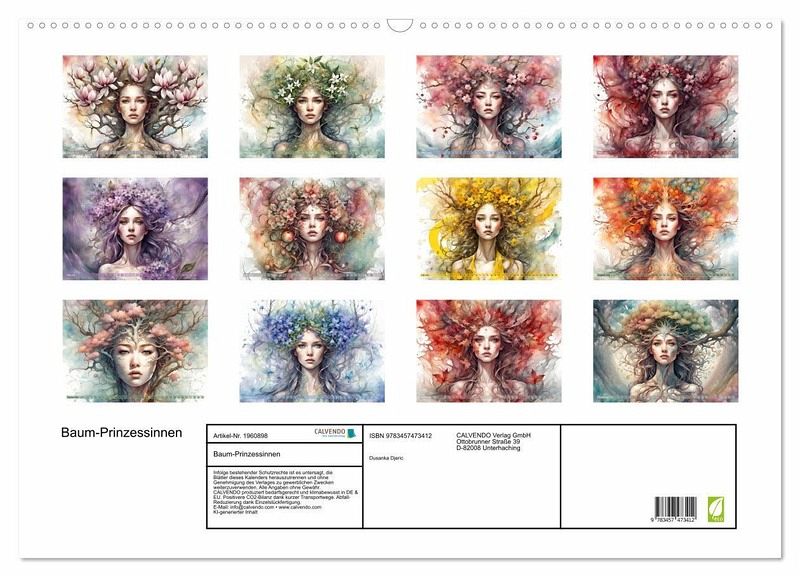 Tauchen Sie ein in die wundersame Welt eines märchenhaften Kalenders, wo Künstliche Intelligenz auf unvergleichliche Schönheit trifft und Baum Prinzessinnen zum Leben erwachen. Jedes Bild verkörpert die zauberhafte Anmut der Prinzessinnen mit ihrer majestätischen Erscheinung, ihre strahlende Schönheit und ihrer geheimnisvollen Aura, fangen sie die Essenz des Märchens ein und verleihen Ihrem Raum eine magische Atmosphäre.