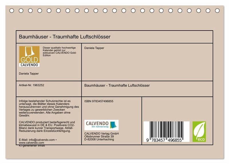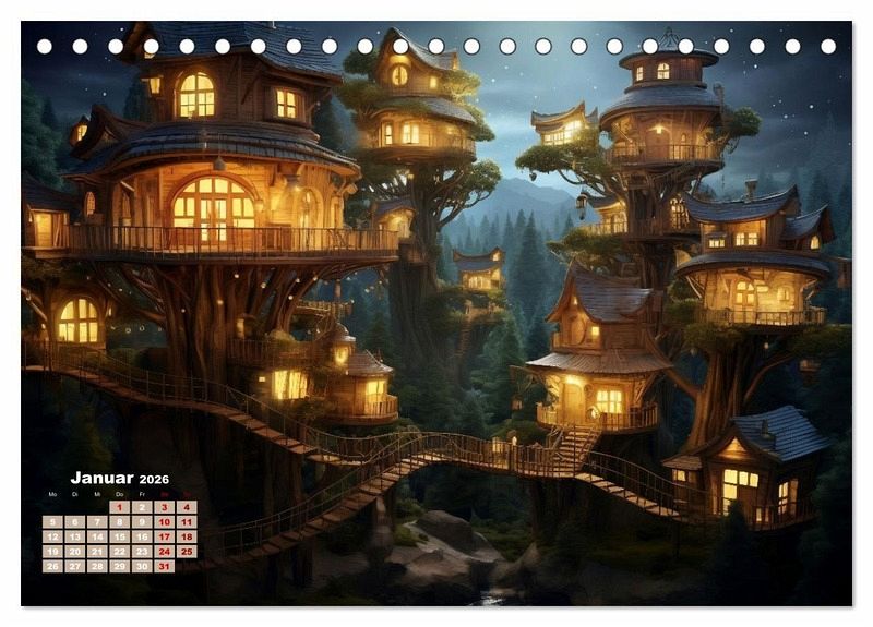 Haben Sie schon immer davon geträumt, in einem Baumhaus zu wohnen? Baumhäuser sind mehr als nur einfache Unterkünfte. Mit Hilfe einer KI sind es fantastische Kunstwerke, die zum Träumen einladen. Lassen Sie sich inspirieren von diesen einzigartigen Bauwerken und ihrer harmonischen Einbindung in die Natur. Dieser Kalender ist ein Muss für alle Baumhaus-Fans und solche, die es werden wollen! Dieser qualitativ hochwertige