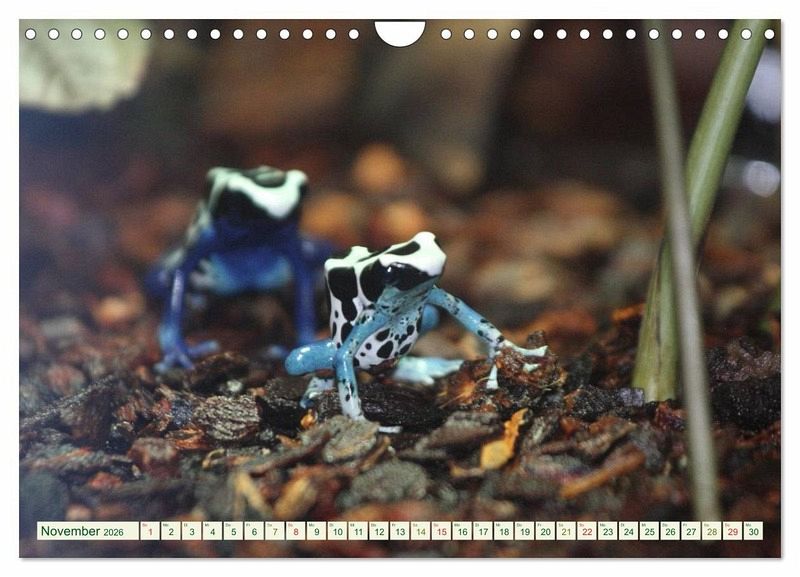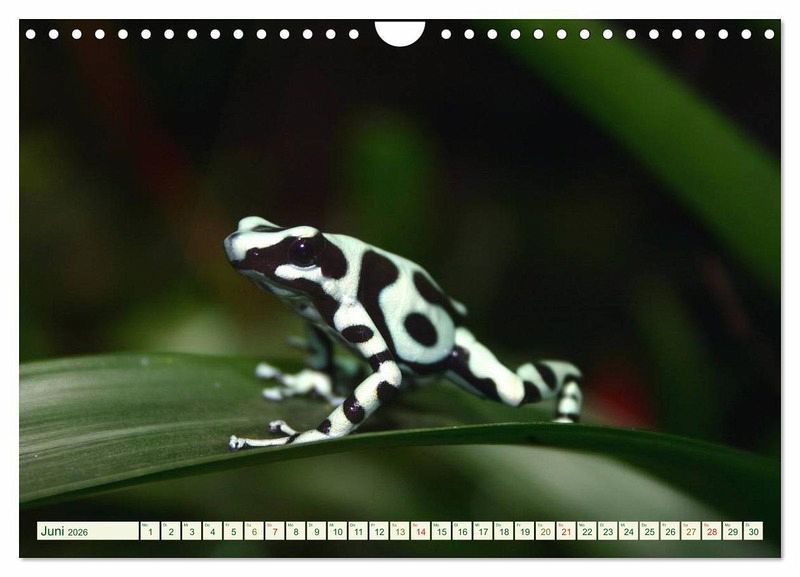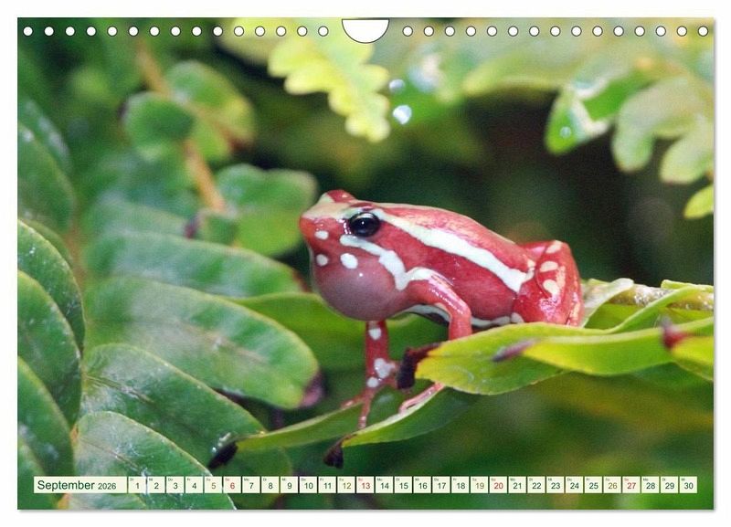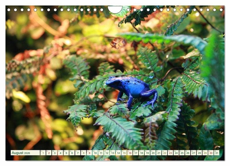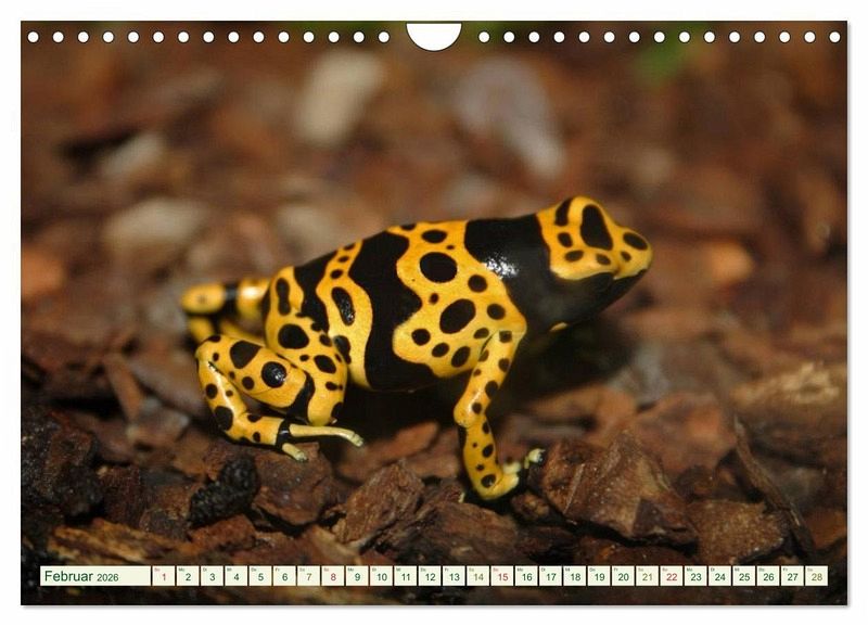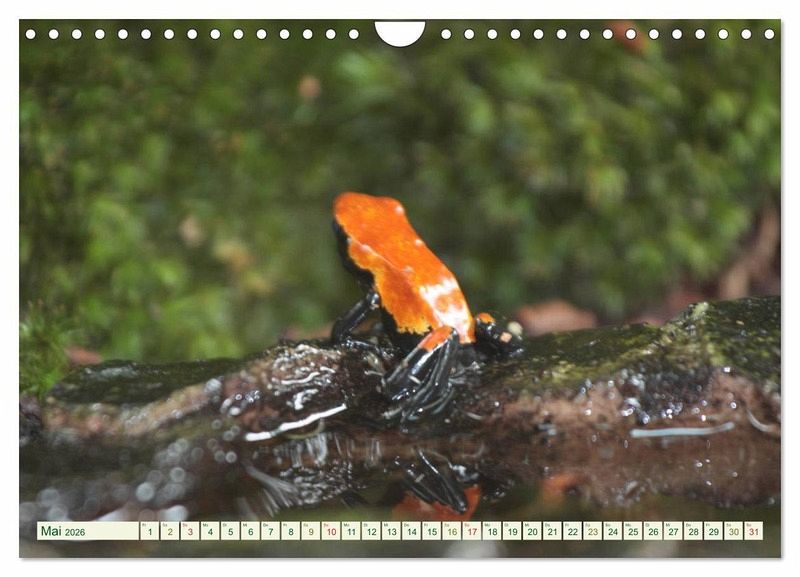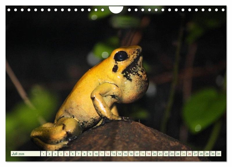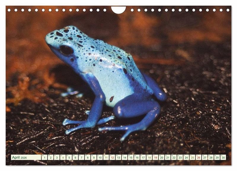 Blauer Baumsteierfrosch, Goldbaumsteiger, Färberfrosch, Schrecklicher Blattsteiger, Maronenbaumsteiger, Gesprenkelter Baumsteigerfrosch, Dreifarben Pfeilgiftfrosch oder auch Gebänderte Pfeilgiftfrösche - einige dieser wunderschönen Tiere wurden für diesen Kalender portraitiert.