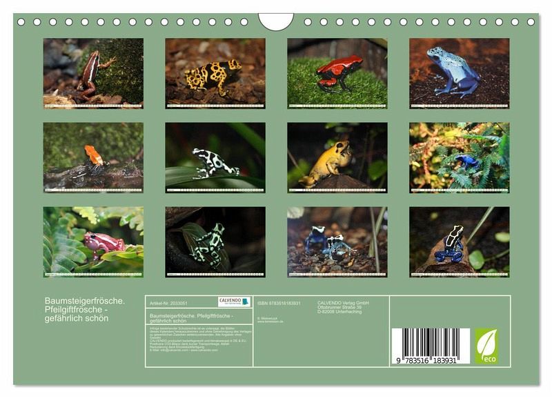 QUALITÄT - Hochwertiger Fotokalender mit 12 wunderschönen Motiven auf lichtbeständigem Bilderdruckpapier, robuste Spiralbindung mit Aufhängebügel.NACHHALTIG - deutliche Abfallreduzierung durch bedarfsgerechte Einzelstückfertigung, umweltfreundliches FSC-zertifiziertes Papier, Produktion in Deutschland, klimabewusste Logistik.PERFEKTES GESCHENK - Kalender für Freunde und Familie, für Kinder und Erwachsene, jung und alt, zu Weihnachten, Geburtstag oder zwischendurch.VIELFALT - Bildkalender in verschiedenen Formaten, z.B. DIN A5, DIN A4, DIN A3 sowie DIN A2. Ob Naturmotiv, Gemälde oder Fotos, ideal für ein persönliches Wohlfühlambiente.Die herrlichen und todbringenden Pfeilgiftfrösche haben etwas Faszinierendes an sich. von Autor(in): Barbara Mielewczyk