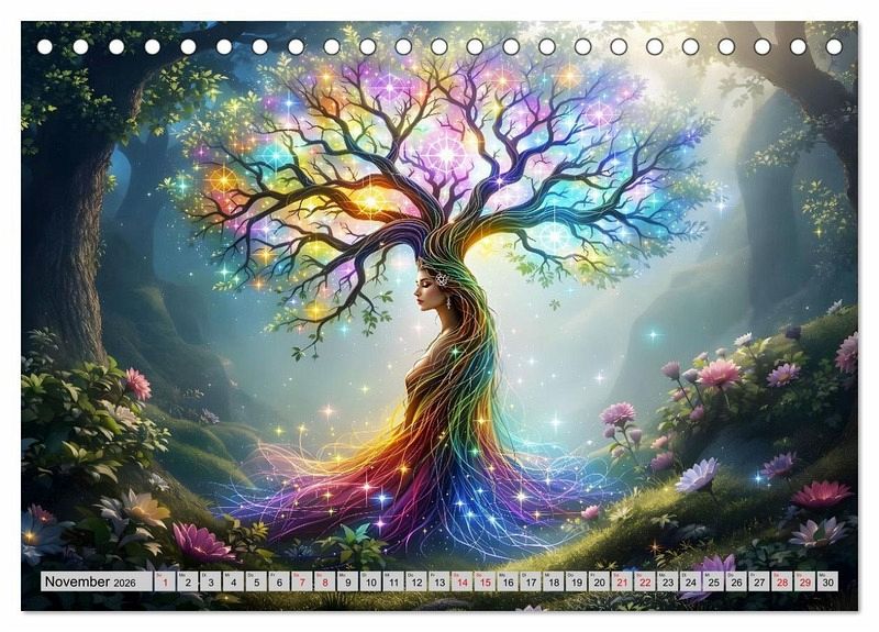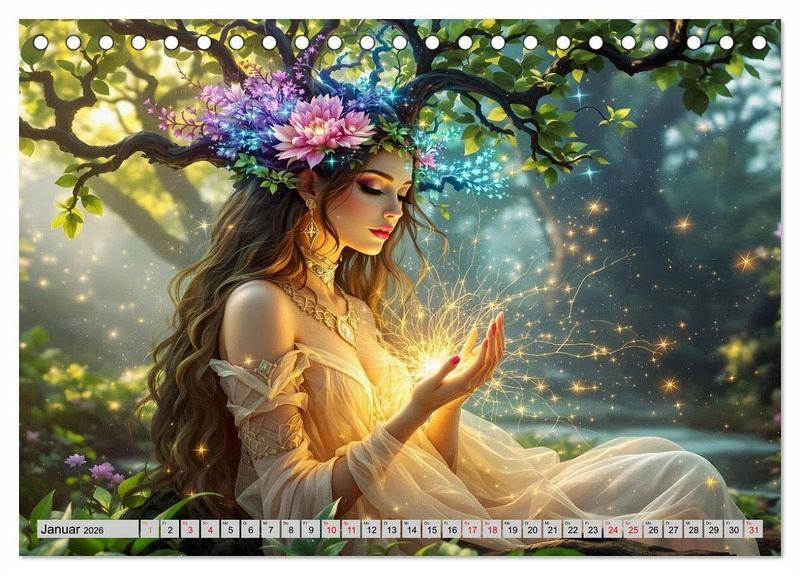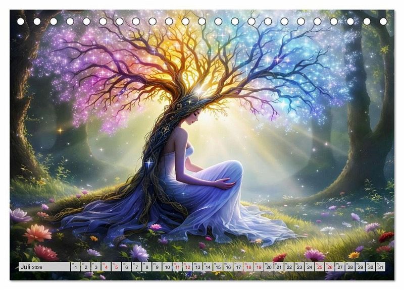 Tauchen Sie ein in die wundersame Welt eines märchenhaften Kalenders, wo Künstliche Intelligenz auf unvergleichliche Schönheit trifft und Bäume zum Leben erwachen. Jedes Bild verkörpert die zauberhafte Anmut der eleganten Baumvision mit ihrer majestätischen Erscheinung, ihre strahlende Schönheit und ihrer geheimnisvollen Aura, fangen sie die Essenz des Märchens ein und verleihen Ihrem Raum eine magische Atmosphäre.