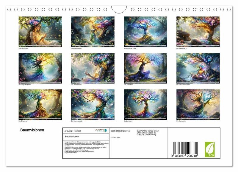 QUALITÄT - Hochwertiger Fotokalender mit 12 wunderschönen Motiven auf lichtbeständigem Bilderdruckpapier, robuste Spiralbindung mit Aufhängebügel.NACHHALTIG - deutliche Abfallreduzierung durch bedarfsgerechte Einzelstückfertigung, umweltfreundliches FSC-zertifiziertes Papier, Produktion in Deutschland, klimabewusste Logistik.PERFEKTES GESCHENK - Kalender für Freunde und Familie, für Kinder und Erwachsene, jung und alt, zu Weihnachten, Geburtstag oder zwischendurch.VIELFALT - Bildkalender in verschiedenen Formaten, z.B. DIN A5, DIN A4, DIN A3 sowie DIN A2. Ob Naturmotiv, Gemälde oder Fotos, ideal für ein persönliches Wohlfühlambiente.Märchenhafte Reise mit lebendigen Baumvisionen. von Autor(in): Dusanka Djeric