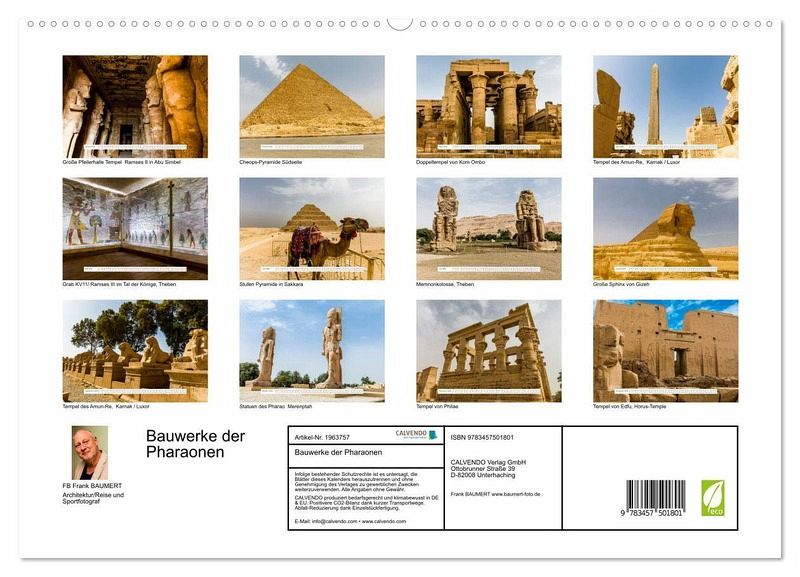 PREMIUM-LINIE - Brillanter Fotokalender mit 12 wunderschönen Motiven, Kunstdruck in Hochglanz in Museumsqualität.QUALITÄT - edle Materialien, stabile Rückwand mit 2 innovativen Einstecktaschen für eine optimale Präsentation an der Wand.NACHHALTIG - deutliche Abfallreduzierung durch bedarfsgerechte Einzelstückfertigung, umweltfreundliches FSC-zertifiziertes Papier, Produktion in Deutschland, klimabewusste Logistik.PERFEKTES GESCHENK - Kalender für Freunde und Familie, für Kinder und Erwachsene, jung und alt, zu Weihnachten, Geburtstag oder zwischendurch.Eine Reise in die Antike zu den Pharaonen von Autor(in): FB Frank BAUMERT